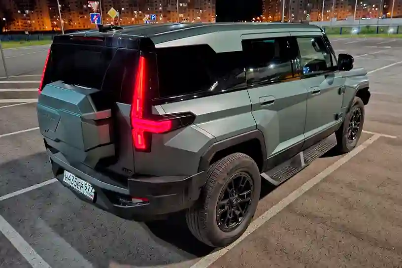Еще один важный момент — это три электромотора, которые суммарно выдают 816 л.с. и 1050 Нм. С такой отдачей 3-тонный внедорожник может разогнаться до «сотни» всего за 6 секунд! Ощущения при нажатии педали газа в пол действительно впечатляют, но есть один нюанс. Если заряд батареи будет небольшим, то и динамика просядет.