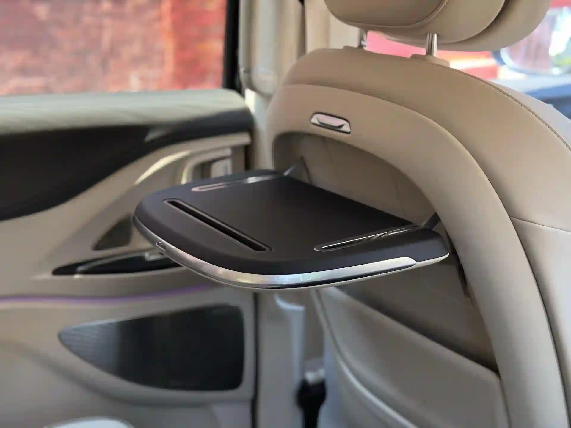 Несмотря на такую концентрацию экранов спереди, сзади их… нет ни одного, как ни странно. Пассажирам второго ряда они бы явно не помешали, но у них есть только раскладные столики. Хоть и удобные. Зато сами кресла, конечно, кайф. Их можно разложить практически в горизонталь — правда, в этом случае можно забыть про диван третьего ряда, а там тоже вполне можно ездить.