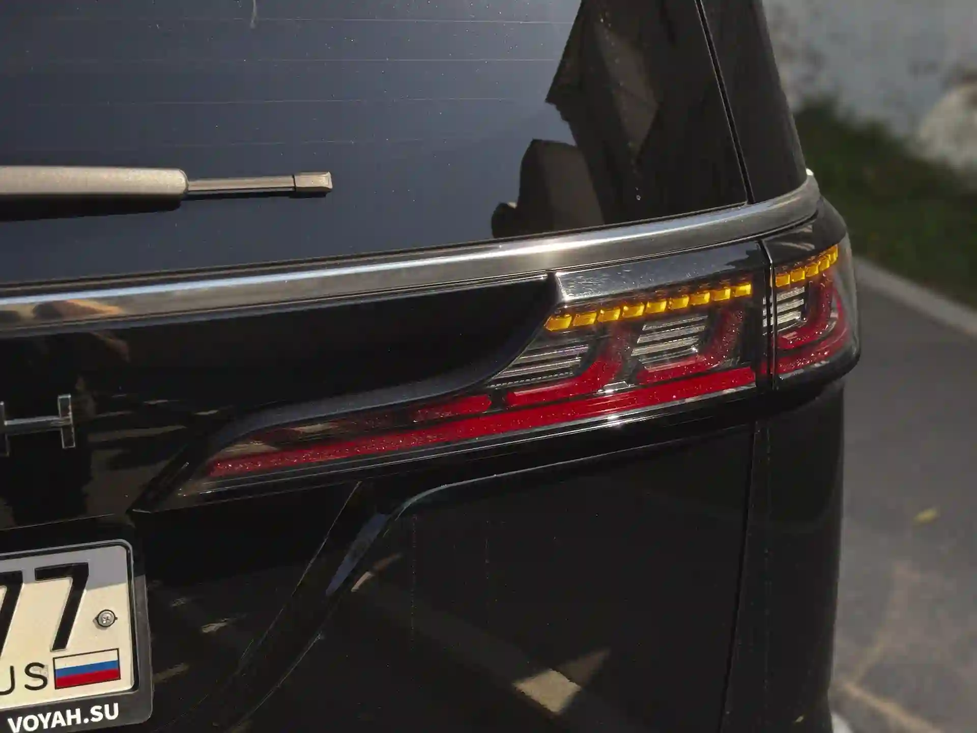 Знатоков автомобильного дизайна порадует такая деталь, как дверные ручки, соединенные ну прям в стиле Rolls-Royce. Весьма большие для минивэна 20-дюймовые колеса — как вишенка на торте. Хотя нет, на эту роль скорее подходит светодиодная полоса с фирменной эмблемой посередине, соединяющая фары головного света.