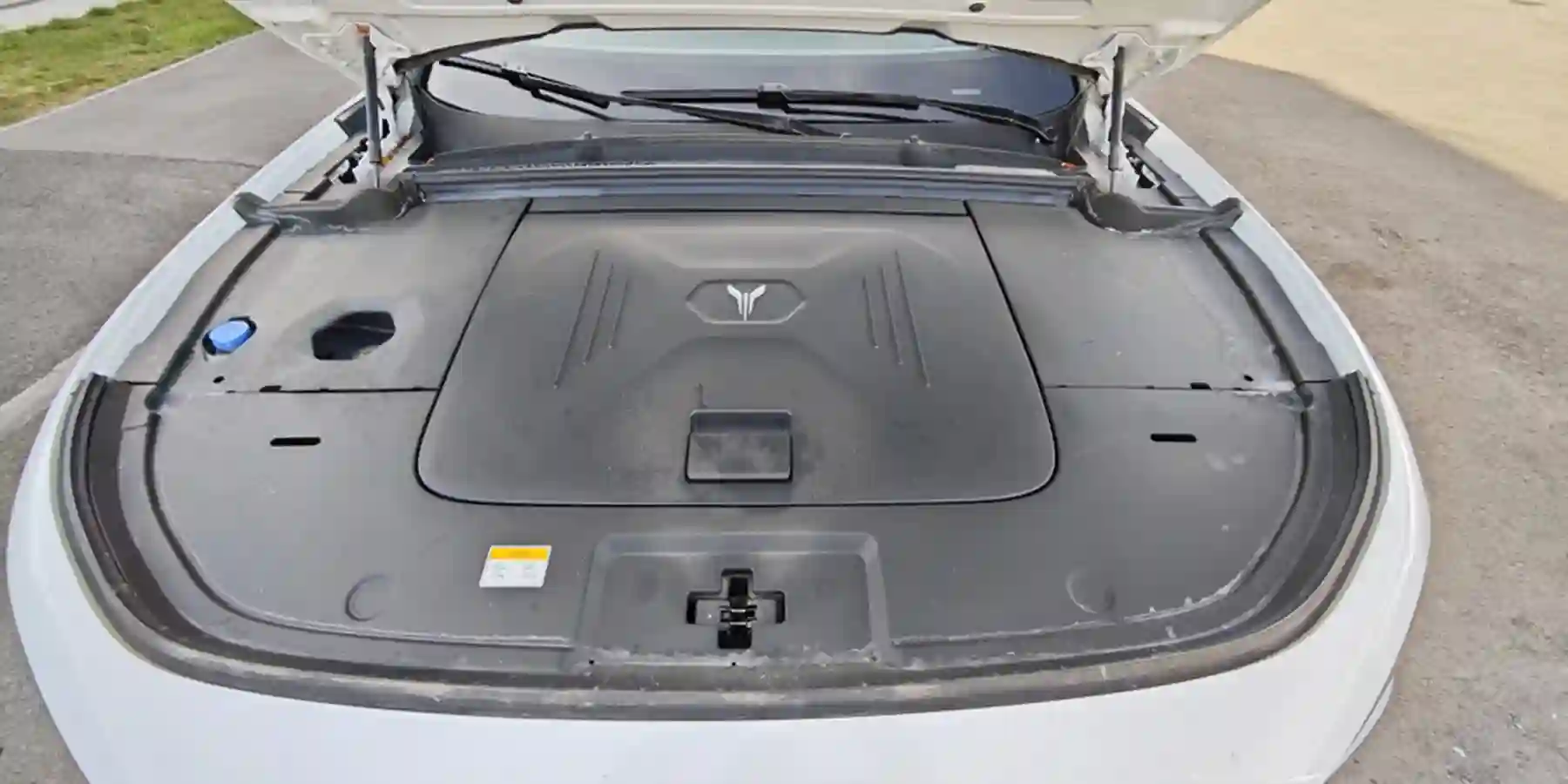 Пол багажного отсека с заявленным объемом 560 литров закреплен наглухо, поскольку под ним расположены электромотор с редуктором и блоки электроники. Запаски, как и во всех китайских электромобилях и гибридах, нет. Герметик для ремонта шин и компрессор прячутся в кармане правого крыла. В левом место занято зарядным портом.