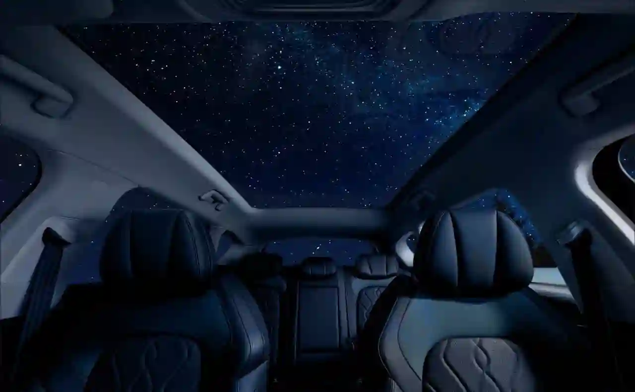 Прозрачность стекла можно регулировать и сделать его затемнение. Всего одна кнопка — и вы уже наслаждаетесь комфортом с внутренней атмосферной подсветкой электрокроссовера, предлагающей 64 варианта цветов на выбор.