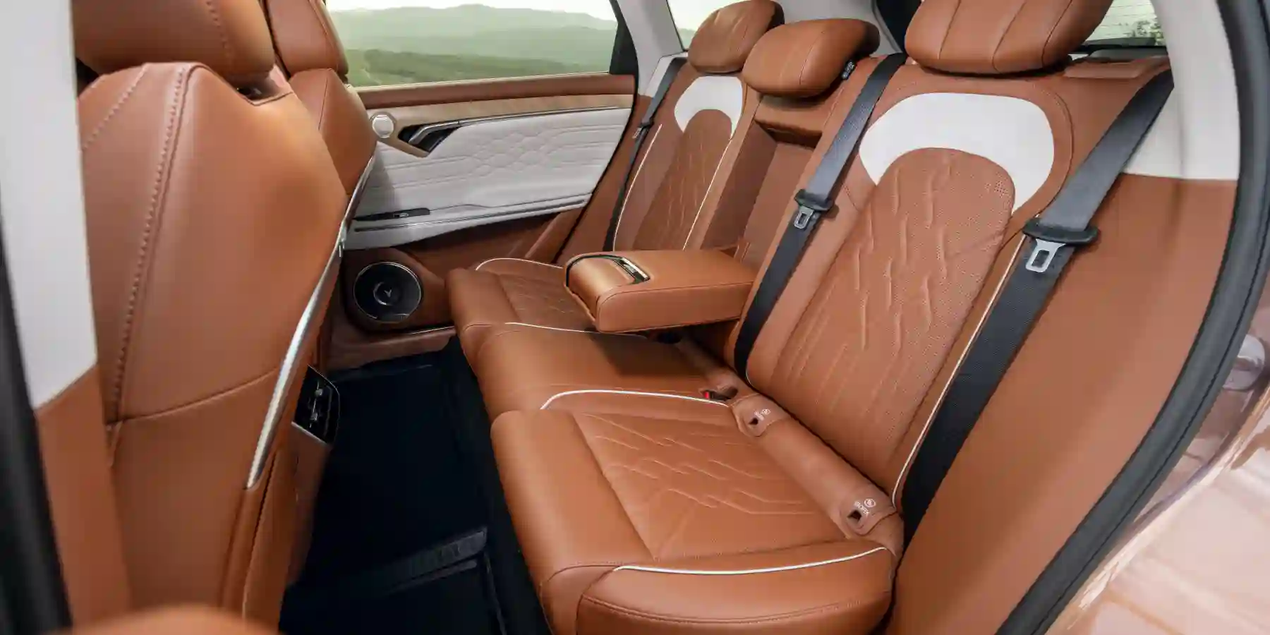 Внешняя «спортивность» нашла свое отражение и в салоне. Для VOYAH FREE Sport Edition можно заказать темную отделку с контрастной зеленой прострочкой или новый серый вариант. Для обивки сидений производитель использует экокожу и алькантару, причем эта комбинация применяется и во втором ряду.